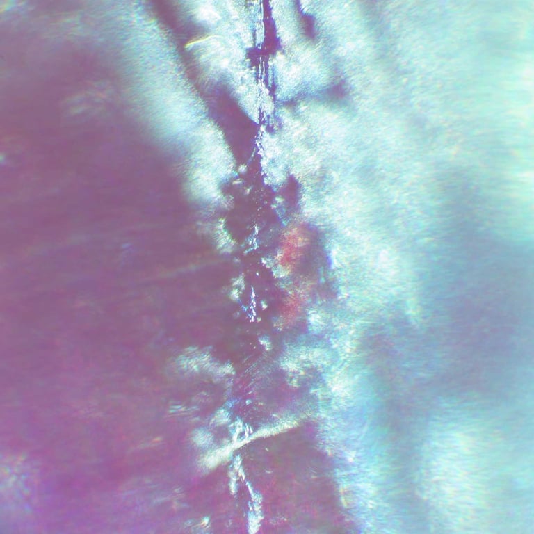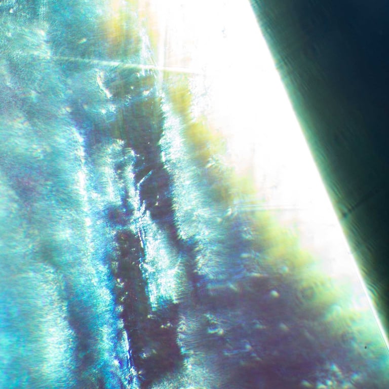 A hyper-macro photo series exploring fragments of quartz and polarized glass. Through reversed lenses, microscopic details become abstract landscapes of light and texture.